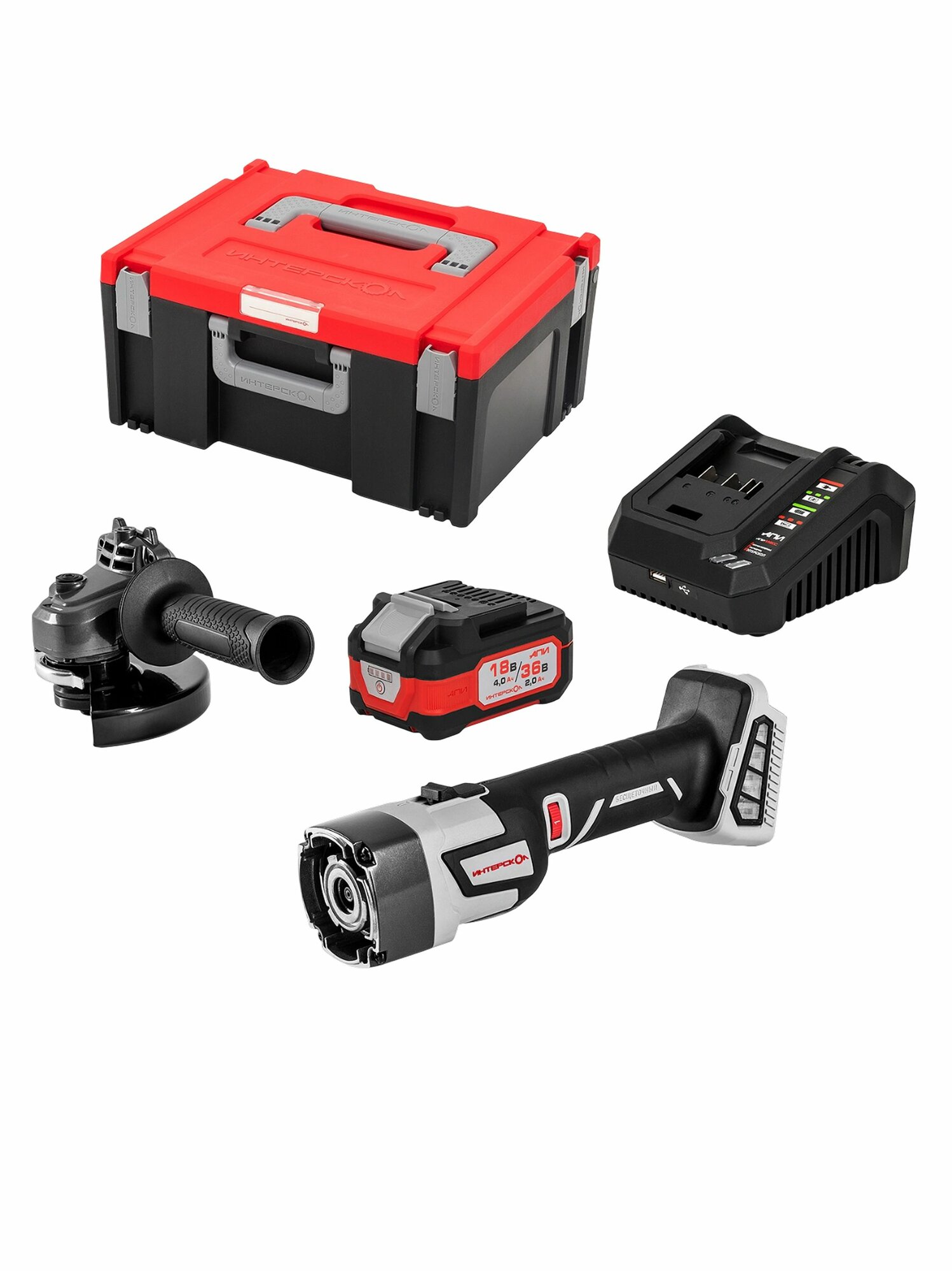 Купить Аккумуляторная угловая шлифмашина ИНТЕРСКОЛ ушм-125/36ММ Мультимакс 36В, 125 мм, 8500 об/мин, с АКБ 2 Ач и ЗУ, в систейнере мультибокс 150 + Оснастка в подарок (900.4.1.42) с доставкой по всей России.