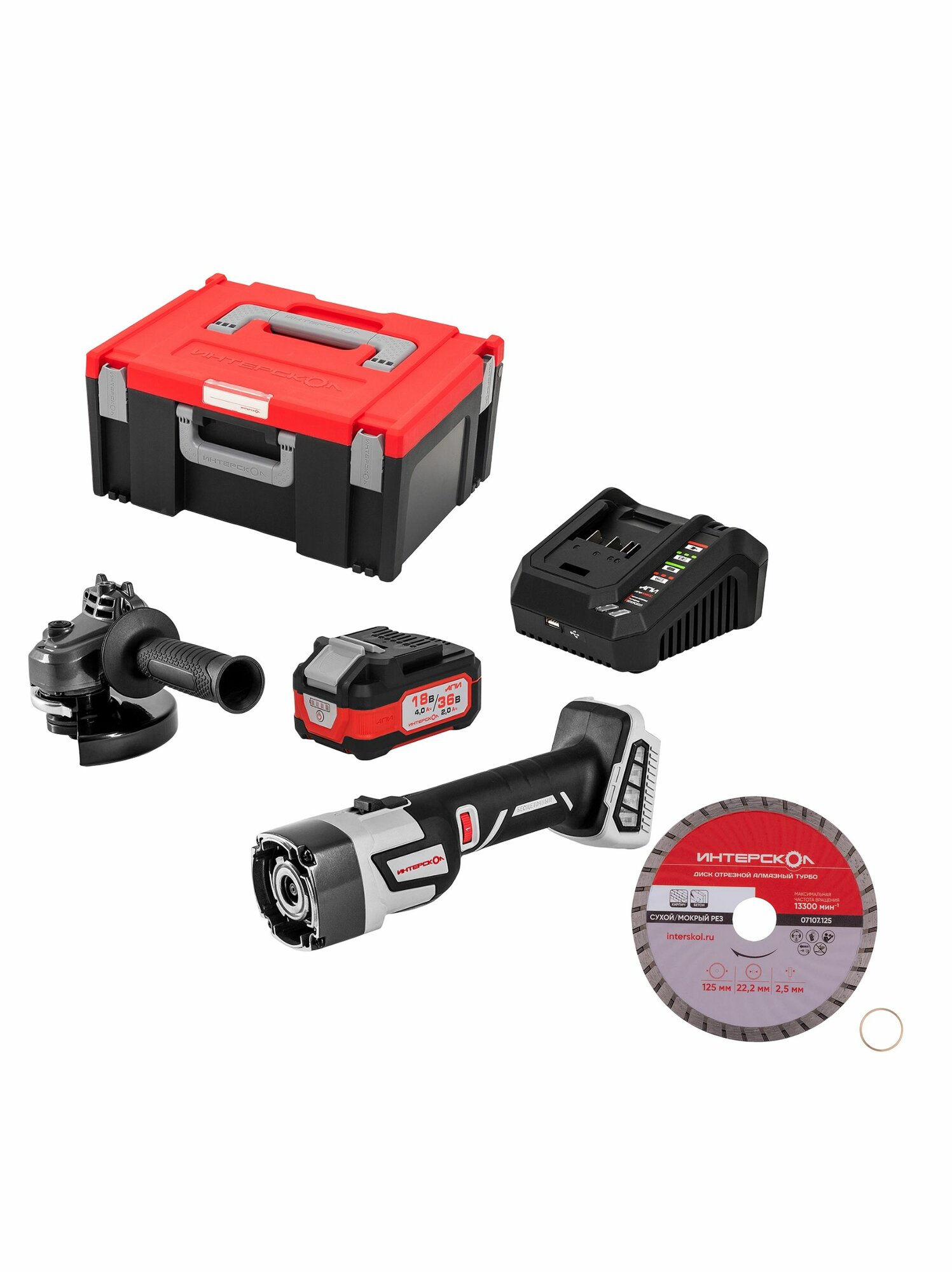 Аккумуляторная угловая шлифмашина ИНТЕРСКОЛ ушм-125/36ММ Мультимакс 36В, 125 мм, 8500 об/мин, с АКБ 2 Ач и ЗУ, в систейнере мультибокс 150 + Оснастка в подарок (900.4.1.42): сравнение цен, характеристики, фото, актуальное наличие и цены.