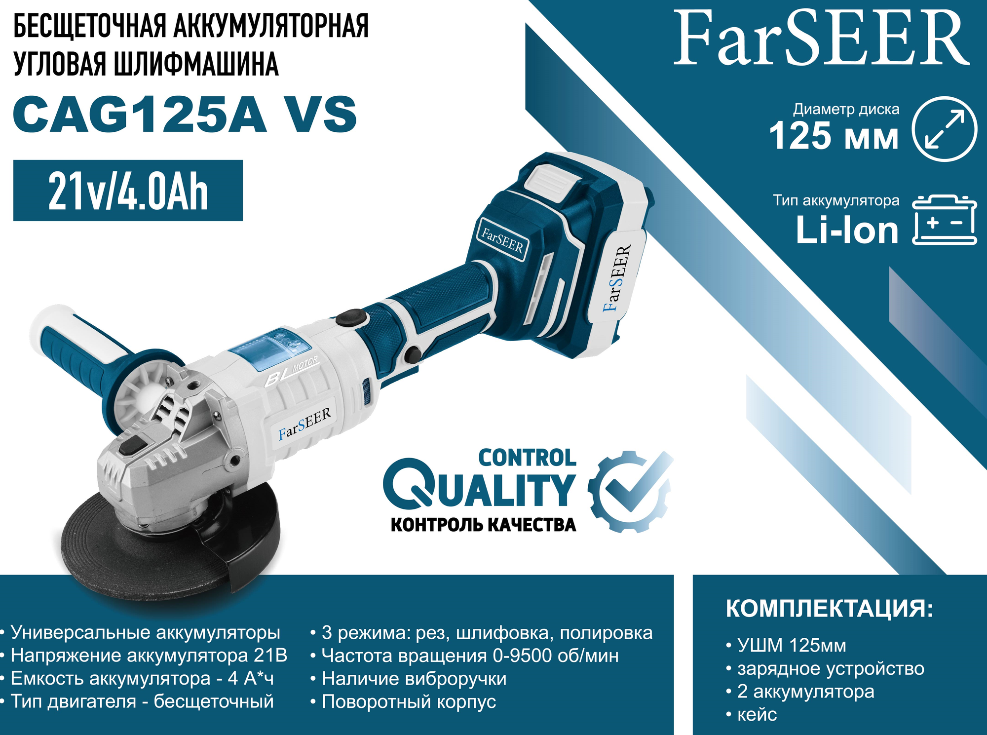 Купить Бесщеточная аккумуляторная угловая шлифмашина FarSEER CAG125A VS с доставкой по всей России. Бесщеточная аккумуляторная угловая шлифмашина FarSEER CAG125A VS: сравнение цен, характеристики, фото, актуальное наличие и цены.