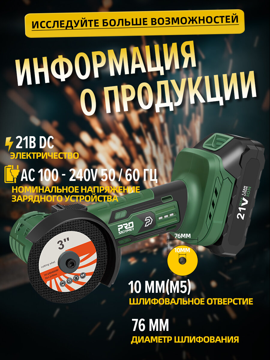 Аккумуляторная УШМ (мини отрезная машина) PROSTORMER 21В, диск 76 мм, 2 АКБ 1.5 А/ч, в коробке , PSBG00202M: сравнение цен, характеристики, фото, актуальное наличие и цены.