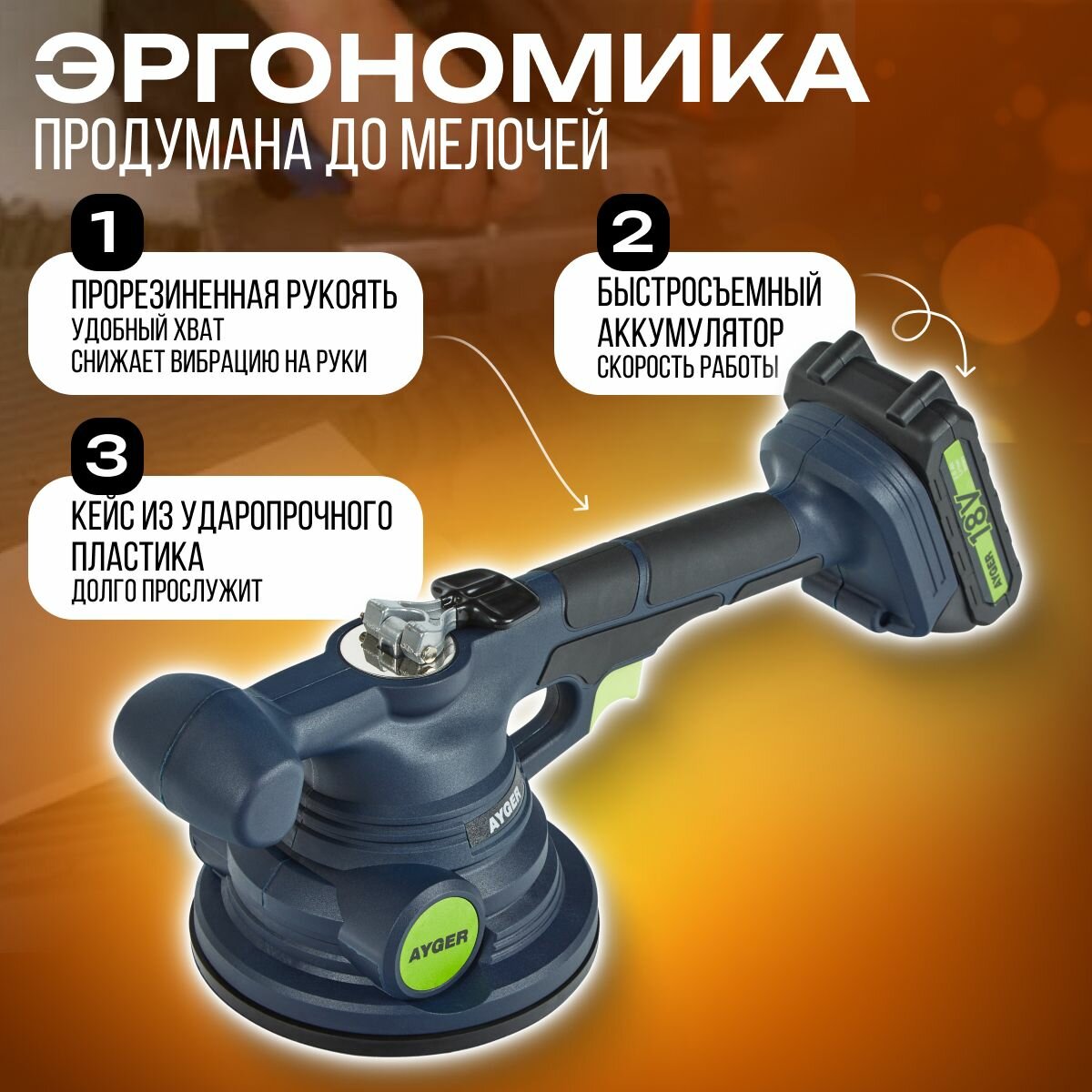 Аккумуляторная Виброприсоска TLM20/50 Ayger – незаменимый инструмент для профессиональных плиточников. Она представляет собой устройство, которое позволяет поднимать и манипулировать плиткой с легкостью. Виброприсоска, в свою очередь, помогает уплотнять основание плитки и удалять воздух из-под нее, существенно оптимизируя процесс укладки. Этот инструмент идеально подходит для работы с плиткой, имеющей шероховатую поверхность или небольшой рельеф, а его главным преимуществом является отсутствие пятен на плитке при использовании виброприсоски . Благодаря своим компактным размерам и легкому весу, он очень удобен в использовании, не вызывая дискомфорта при работе. Однако, основным преимуществом этой виброприсоски является его постоянная и равномерная вибрация, которая позволяет избегать повреждений плитки, даже если на ней имеются отверстия или разрезы большого размера. Таким образом, данный инструмент может использоваться для переноски плитки, а также для уплотнения основания и удаления воздуха при помощи вибрации. Итак, виброприсоска TLM20/50 AYGER стала незаменимым помощником для профессиональных плиточников, обеспечивая им удобство и надежность работы с плиткой.