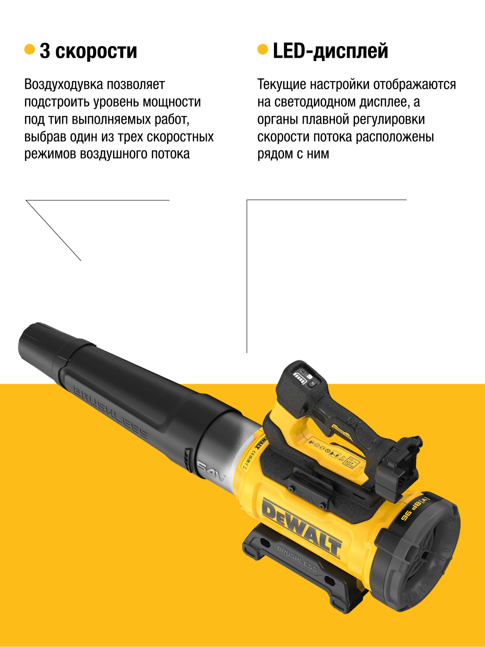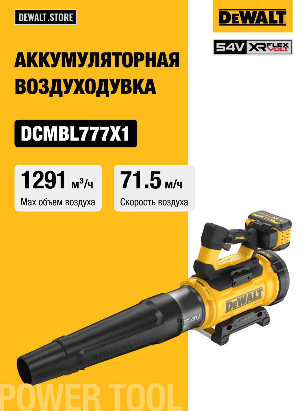 Аккумуляторная воздуходувка DEWALT DCMBL777X1, 54 В, 1291 м /ч, с АКБ 3 Ач и ЗУ (DCMBL777X1-QW): сравнение цен, характеристики, фото, актуальное наличие и цены.