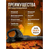Представляем вам воздуходувку аккумуляторную 1300 Kettama — мощное и эффективное решение для уборки листьев и другого мусора на вашем участке. Эта садовая воздуходувка — отличный помощник для дачников и садоводов, обеспечивая чистоту и порядок без лишних усилий. Преимущества воздуходувки Kettama: • Мощность и производительность: Номинальная скорость холостого хода достигает 13000 об/мин, а скорость воздуха — 200 км/ч. Это позволяет эффективно справляться с задачами, связанными с уборкой листвы и мусора. Вы сможете быстро и легко очистить свой сад или дачу, используя нашу ветродуйку аккумуляторную. • Долговечная работа: Литий-ионный аккумулятор на 20 V и ёмкостью 2 Ah обеспечивает максимальное время работы до 45 минут. А с максимальным временем зарядки всего 2,5 часа, вы всегда будете готовы к уборке. Эта беспроводная воздуходувка освобождает вас от проводов, обеспечивая полную свободу передвижения. • Компактность и легкость: С весом всего 1,6 кг, эта воздуходувка садовая аккумуляторная портативна и удобна в использовании. Габариты 750х180х120 мм делают её легкой для хранения и транспортировки. • Уровень шума: Уровень шума LWA составляет 98 дБ(A), что делает работу с этой ветродуйкой максимально комфортной для вас и ваших соседей. • Многофункциональность: Эта воздуходувка аккумуляторная мощная идеально подходит для сбора листвы, а также для других задач по уборке на вашем участке. Используйте её как выдуватель листвы или дуйку для листвы — она станет незаменимым садовым инструментом для вашего дома.