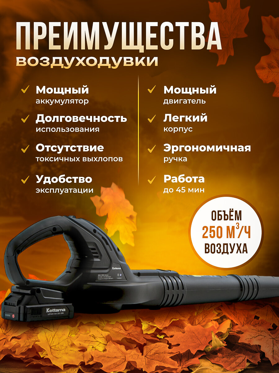 Воздуходувка аккумуляторная 1300 Kettama — идеальный выбор для вашего сада!