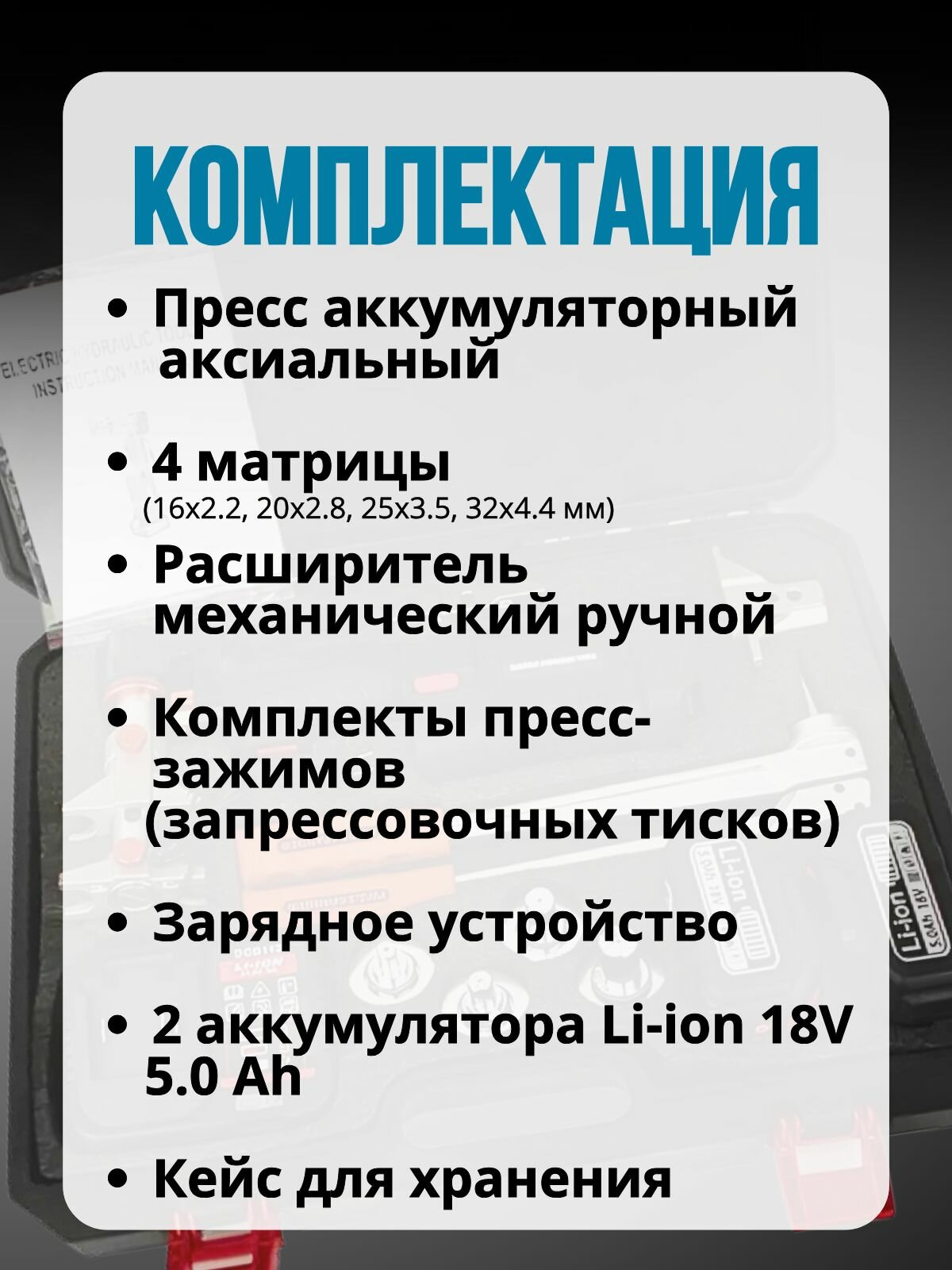 Купить Аккумуляторные аксиальные гидравлические пресс клещи 18V с 4 насадками с доставкой по всей России. Аккумуляторные аксиальные гидравлические пресс клещи 18V с 4 насадками: сравнение цен, характеристики, фото, актуальное наличие и цены.
