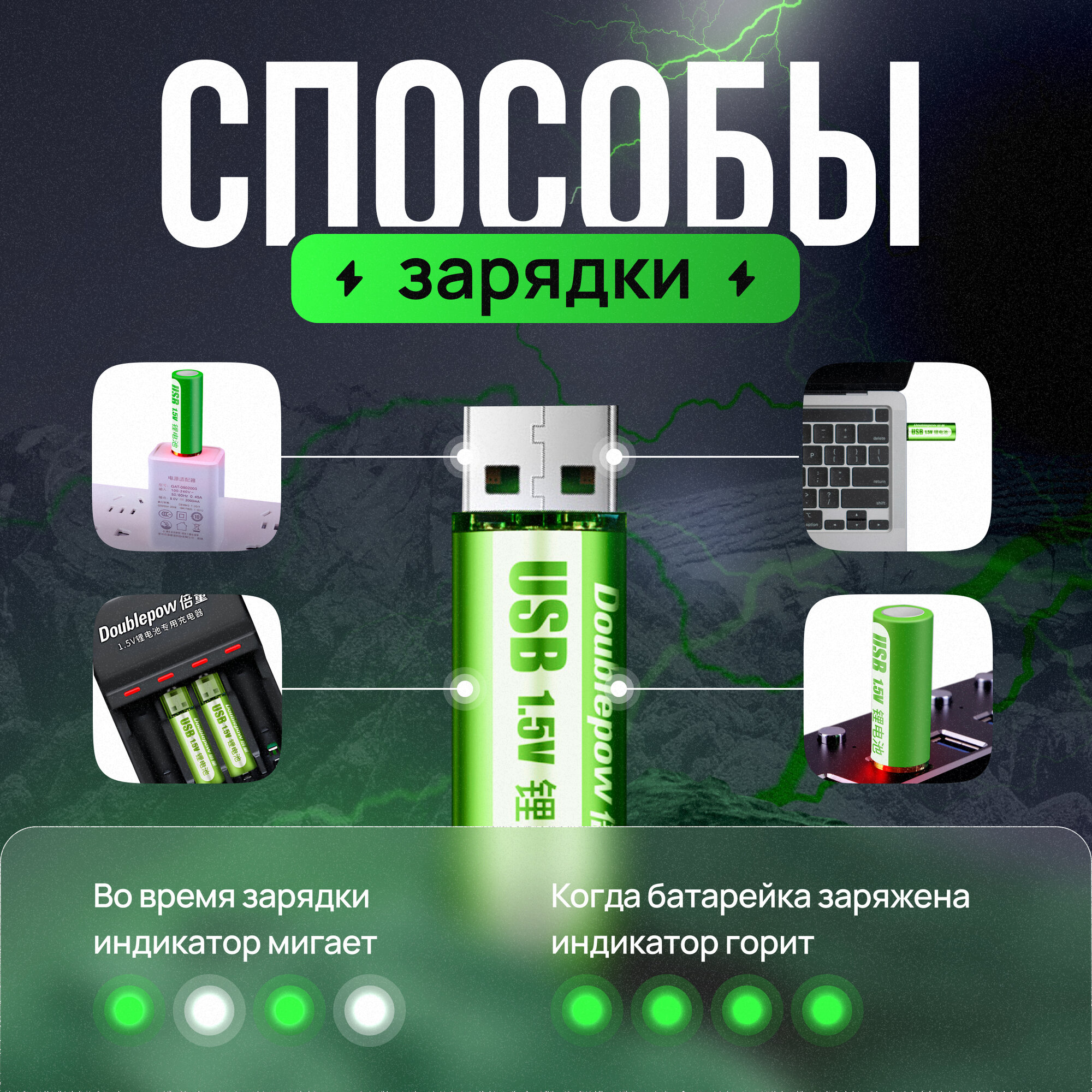Купить Аккумуляторные батарейки Doublepow AA Li-Ion 1.5В 1800mWh со встроенной USB зарядкой, 4 шт с доставкой по всей России. Аккумуляторные батарейки Doublepow AA Li-Ion 1.5В 1800mWh со встроенной USB зарядкой, 4 шт: сравнение цен, характеристики, фото, актуальное наличие и цены.