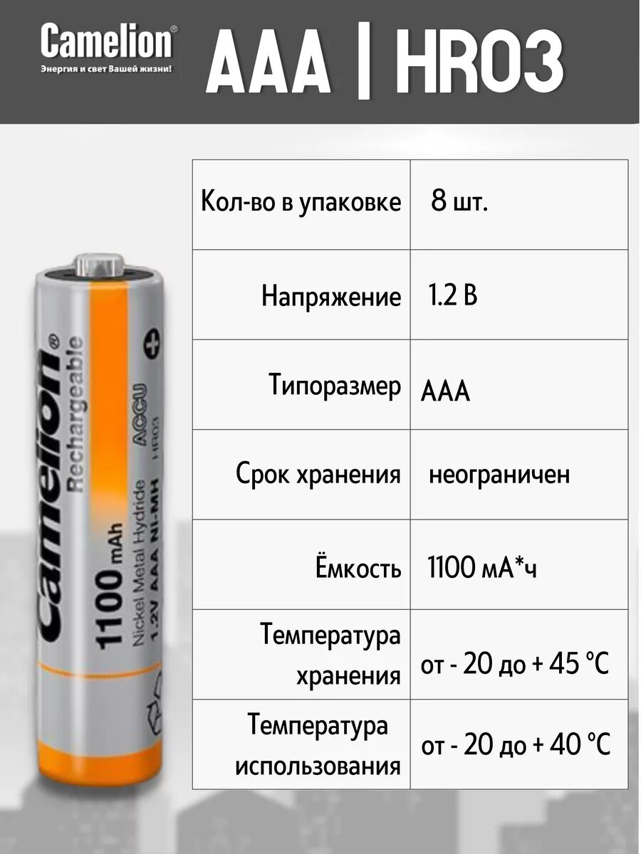 Купить Аккумуляторные батарейки R03 AAA BL4 NI-MH 1100mAh — 8 шт с доставкой по всей России. Аккумуляторные батарейки R03 AAA BL4 NI-MH 1100mAh — 8 шт: сравнение цен, характеристики, фото, актуальное наличие и цены.