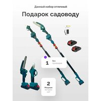 Полный комплект для удобной и эффективной обрезки деревьев и кустарников. Включает аккумуляторный секатор, пилу с удлинителем и мощный бесщеточный мотор. Идеальный подарок садоводу!
