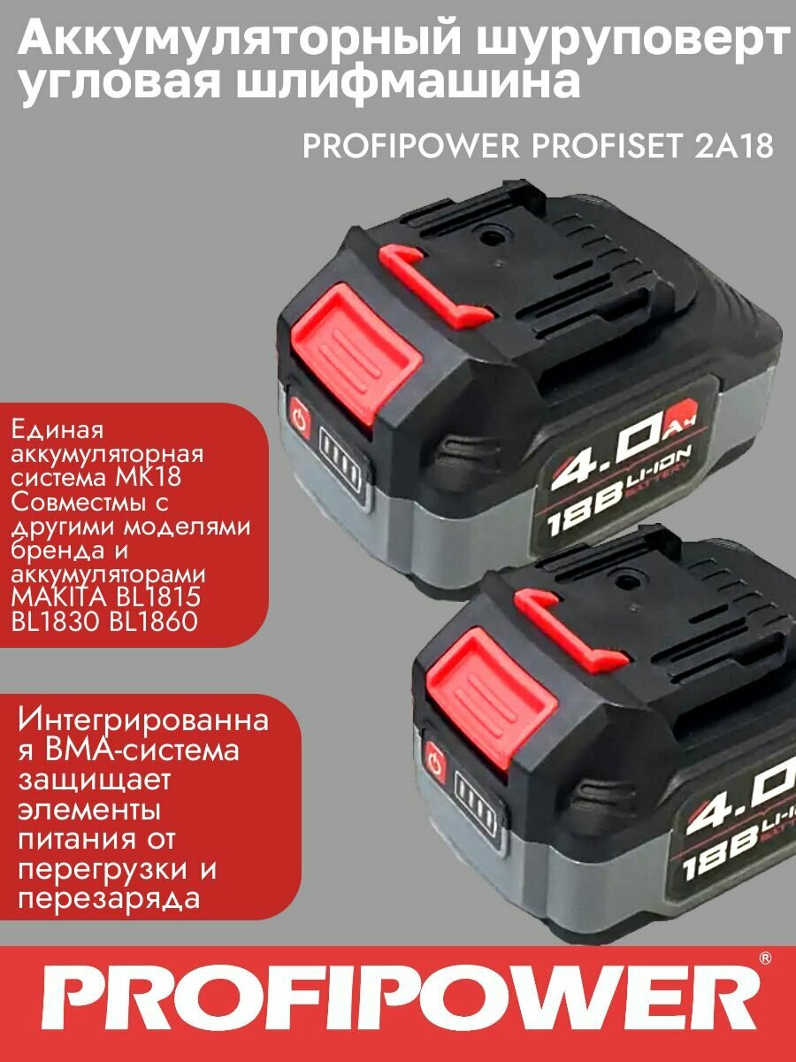 Купить Аккумуляторный бесщеточный набор PROFIPOWER ProFiset Шуруповерт + УШМ 4Ач х2 Кейс с доставкой по всей России.