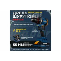 Аккумуляторный бесщеточный шуруповерт, 20 В, 55 Нм, 2 АКБ Mabar 5502-1-2.0