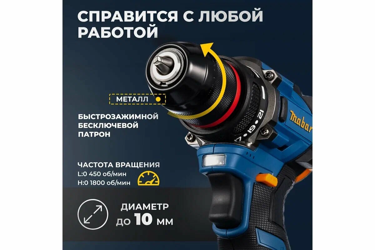 Купить Аккумуляторный бесщеточный шуруповерт, 20 В, 55 Нм, 2 АКБ Mabar 5502-1-2.0 с доставкой по всей России.