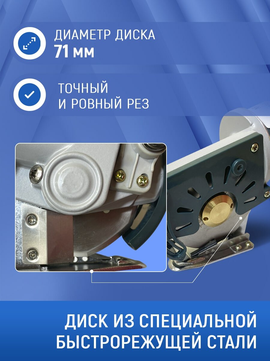 - Многогранная форма диска облегчает раскрой тяжелых тканей;