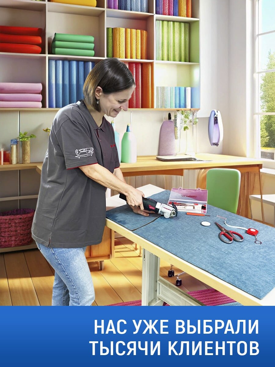 - Подошва с роликами способствует легкому перемещению ножа по раскройному столу.