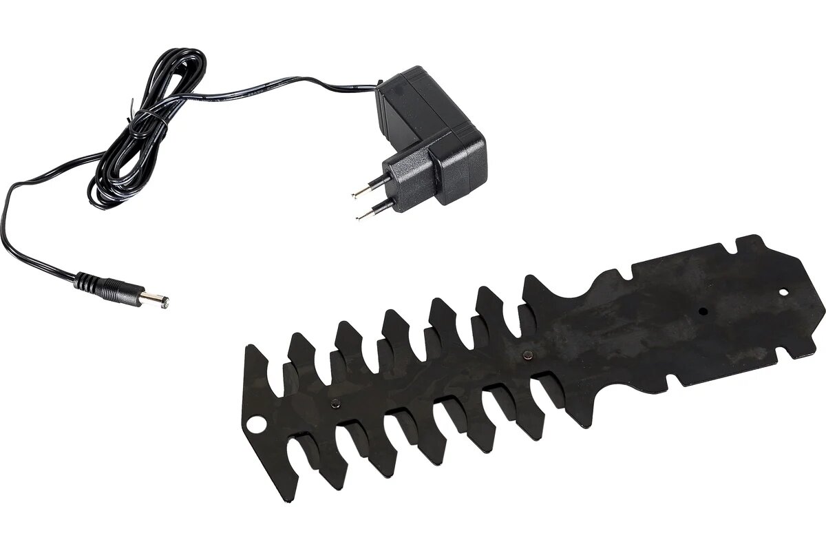 Триммер-кусторез в сборе - 1 шт. Аккумулятор – 1 шт. Зарядное устройство – 1шт. Лезвие для работы в режиме кустореза – 1 шт. Лезвие для работы в режиме стрижки газона – 1 шт. Руководство по эксплуатации - 1 экз