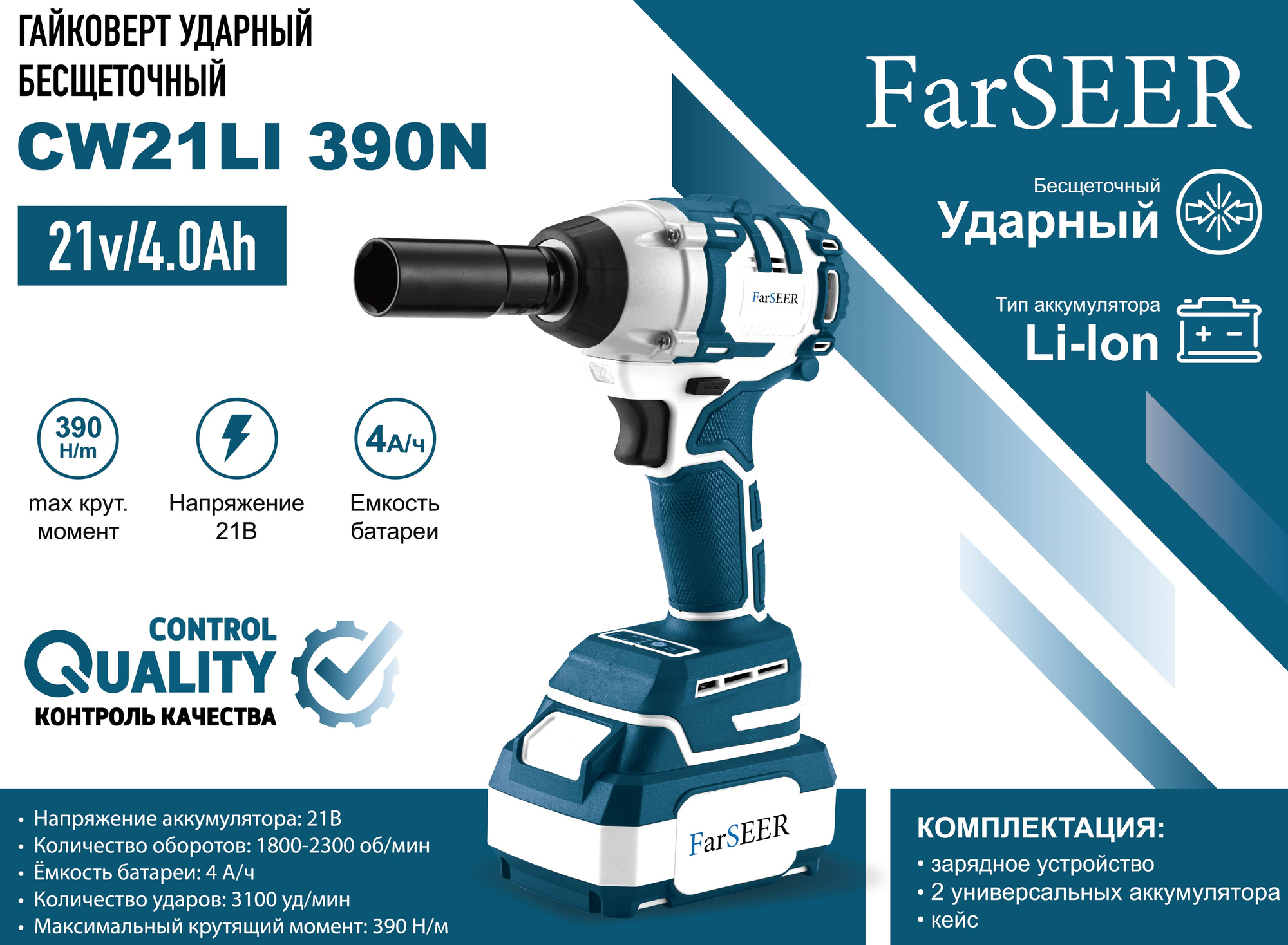 Купить Аккумуляторный гайковерт бесщеточный ударный FarSEER CW21Li 390N с доставкой по всей России.