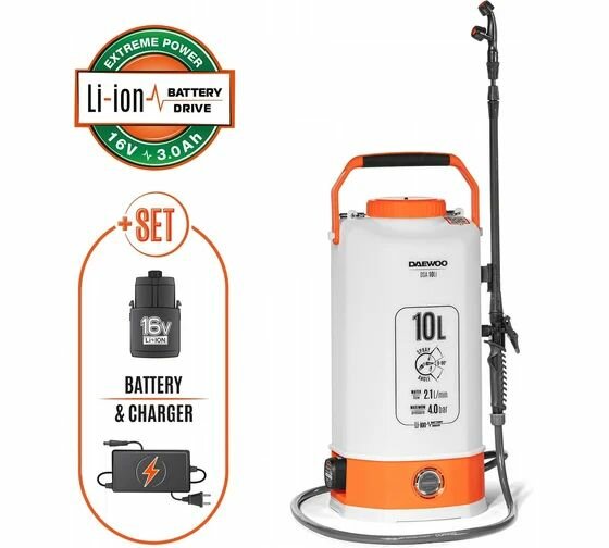 Купить Аккумуляторный опрыскиватель DAEWOO DSA 10 Li с доставкой по всей России. Аккумуляторный опрыскиватель DAEWOO DSA 10 Li: сравнение цен, характеристики, фото, актуальное наличие и цены.