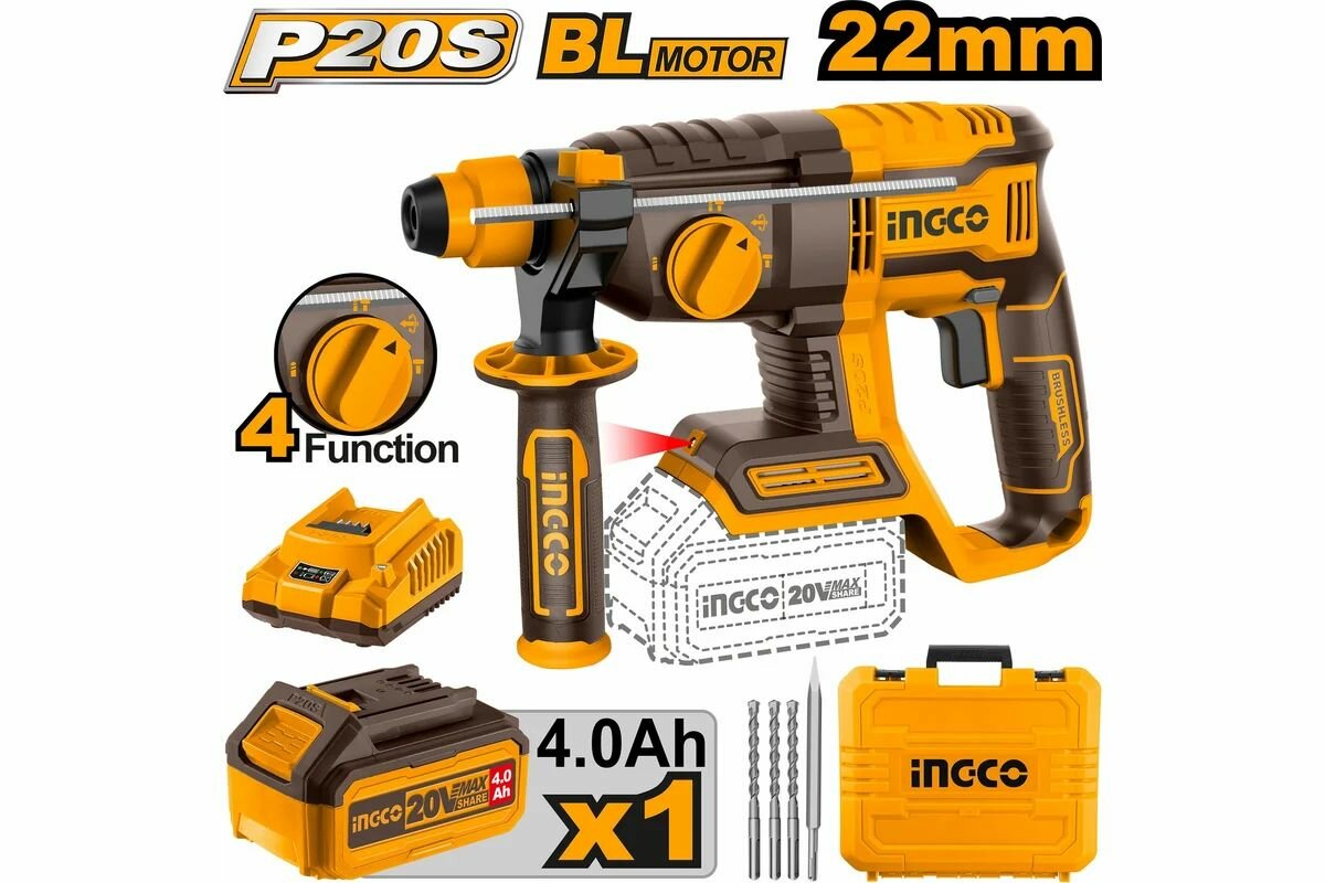 Купить Аккумуляторный перфоратор BL 20В, 1хАКБ 4Ач и ЗУ SUPER INGCO CRHLI202081 INDUSTRIAL с доставкой по всей России.