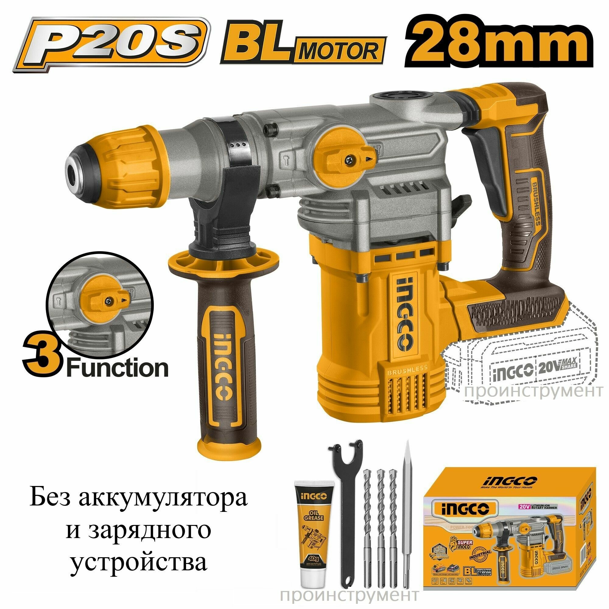 Купить Аккумуляторный перфоратор BL 20В, 4,5Дж без АКБ и ЗУ SUPER INGCO CRHLI20288 INDUSTRIAL с доставкой по всей России. Аккумуляторный перфоратор BL 20В, 4,5Дж без АКБ и ЗУ SUPER INGCO CRHLI20288 INDUSTRIAL: сравнение цен, характеристики, фото, актуальное наличие и цены.