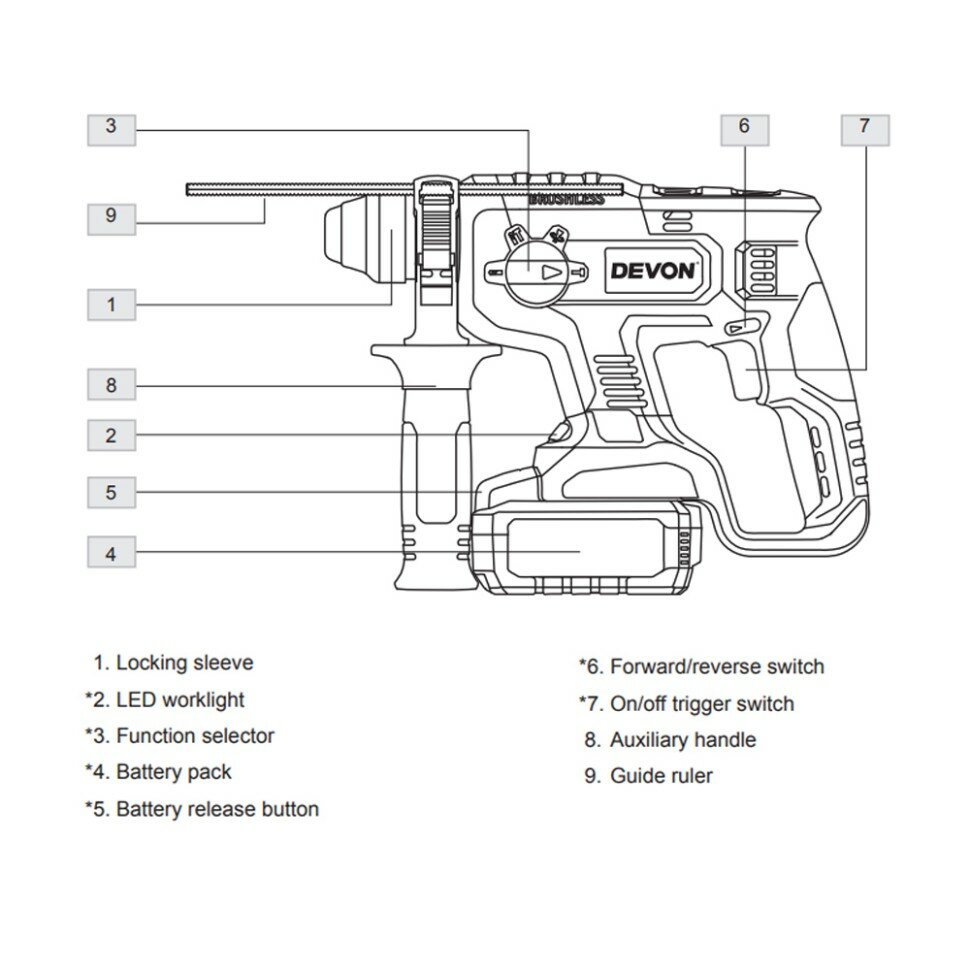 Купить Аккумуляторный перфоратор DEVON 5401-Li-20RH без аккумулятора и ЗУ с доставкой по всей России. Аккумуляторный перфоратор DEVON 5401-Li-20RH без аккумулятора и ЗУ: сравнение цен, характеристики, фото, актуальное наличие и цены.