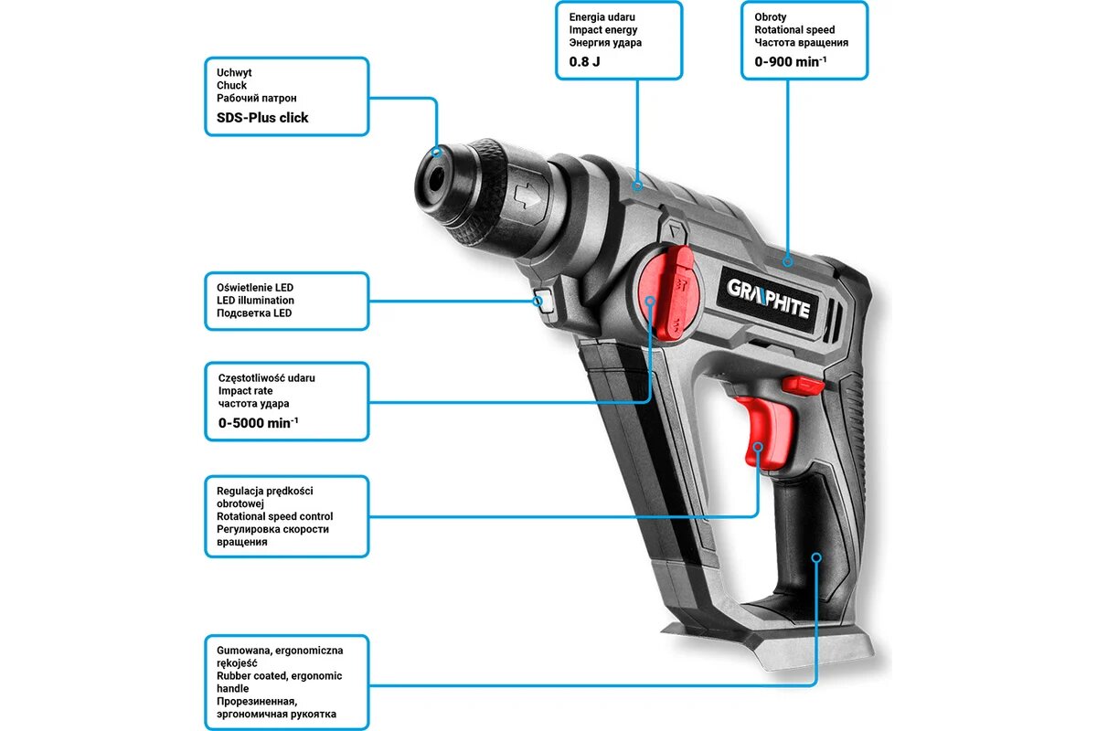 GRAPHITE Перфоратор аккум SDS+ Energy+ 18 V Li-Ion/0,8 Дж,/без АКБ и ЗУ/ 58G009: сравнение цен, характеристики, фото, актуальное наличие и цены.