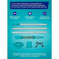 - Автономность: До 50 минут непрерывной работы от одного заряда (4-5 часов зарядки через USB).