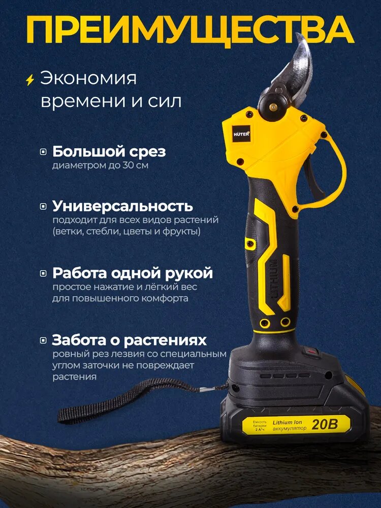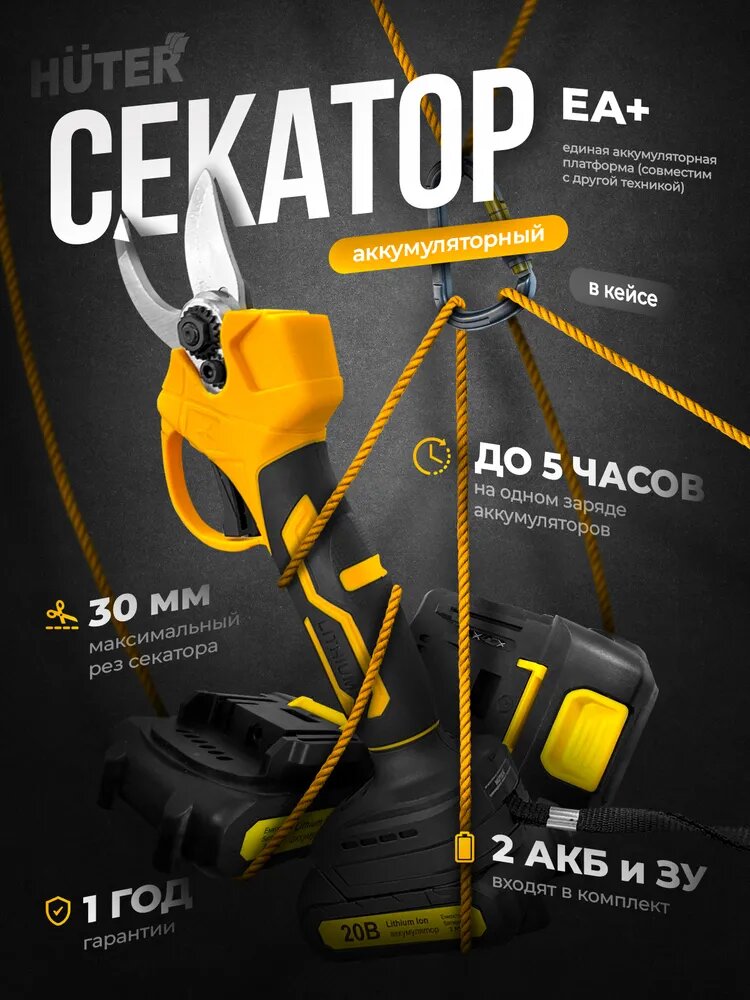 Аккумуляторный секатор Huter CP-2000/30Li POWER (в комплекте с 2-мя АКБ и ЗУ): сравнение цен, характеристики, фото, актуальное наличие и цены.
