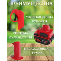 Литиевая батарея большой емкости 21 В 2000 мАч, время перезарядки 1-1,5 может обеспечить время работы 4-5 часов. 2 батареи в комплекте.