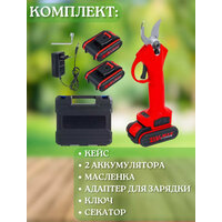 Кейс, 2 аккумулятора, комплект ключей, смазка, секатор, зарядное устройство