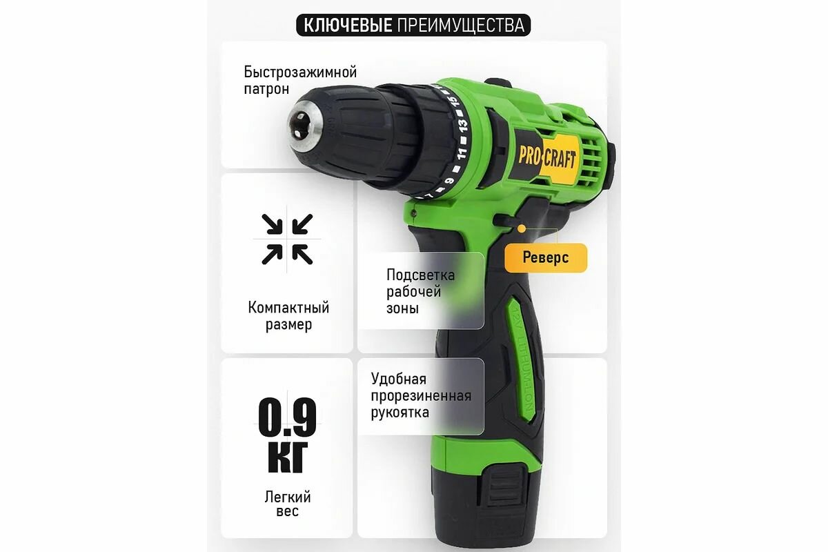 Аккумуляторный шуруповерт PA-12Li NEW, COMPACT бренд Procraft Universal ( Число оборотов холостого хода 0-350/0-1350 об/мин, Ёмкость батареи 2 Ач, Номинальное напряжение 12 В, Аккумулятор 2шт. ): сравнение цен, характеристики, фото, актуальное наличие и цены.