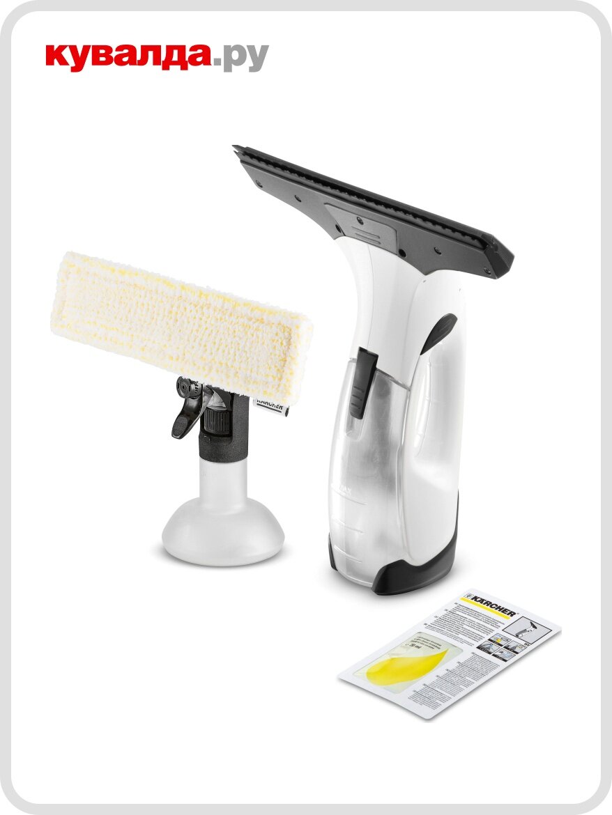 | Дополнительная информация | Зарядное устройство Пульверизатор Standard с микроволоконной насадкой Концентрат средства для мойки окон (1 × 20 мл) Особенности и оснащение Ширина всасывающей насадки: 280 мм Возможность замены всасывающей насадки |