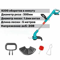 | Подробная комплектация | Триммер аккумуляторный - 1 шт Ручка для триммера - 1 шт Защитный кожух - 1 шт Леска - 1 шт |