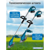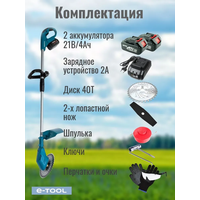 Аккумуляторный садовый триммер предназначена для уборки, как газонной травы так и грубых сорняков, порослей кустарников, подрезки веток. Для кошения газонной травы, обработки участков под деревьями, скамейками, вдоль заборов и цоколей в комплекте катушка с леской. Для жесткой травы, сорняков, густых зарослей используется стальной 2-х лопастной диск или фреза 40Т. Для подрезки порослей кустарников и веток предназначена фреза с победитовыми напайками 40Т. Работает от li-lon аккумуляторов которые идут в комплекте. Для комфортной работы триммер оснащен телескопической штангой и передвижной рукояткой.