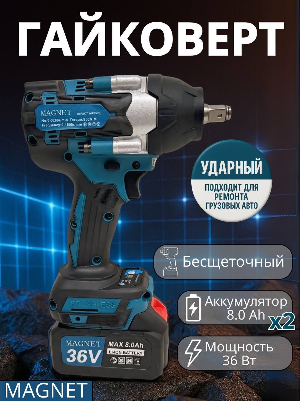 Аккумуляторный ударный гайковерт для грузовых автомобилей , Бесщеточный, Мощность 800 Нм,36 V: сравнение цен, характеристики, фото, актуальное наличие и цены.