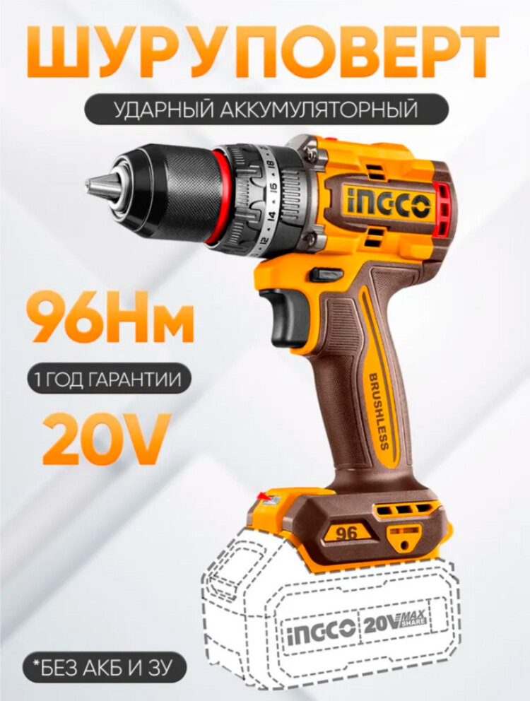 Купить Аккумуляторный ударный шуруповерт 20B BL 96Hm Без АКБ и ЗУ INGCO CIDLI209681 INDUSTRIAL с доставкой по всей России.