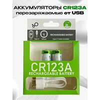 аккумуляторы CR123 2 шт, двойной провод USB Type-C для быстрой зарядки, упаковка блистер.