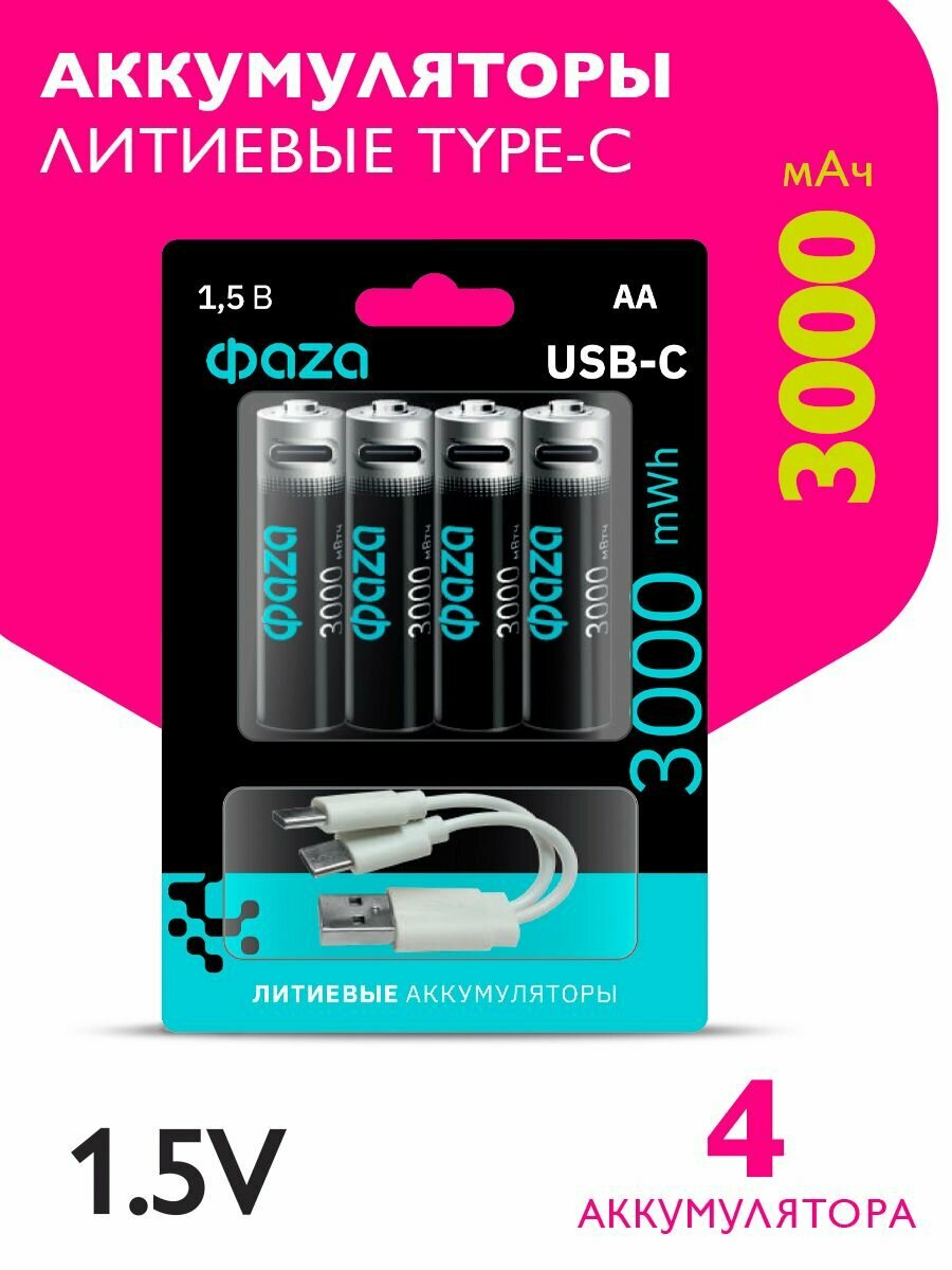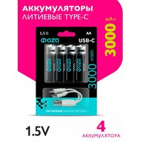 Аккумуляторы пальчиковые Литиевые с Type-C: LiAA-3000 USB (R6), 200 мАч, 4 шт.: сравнение цен, характеристики, фото, актуальное наличие и цены.