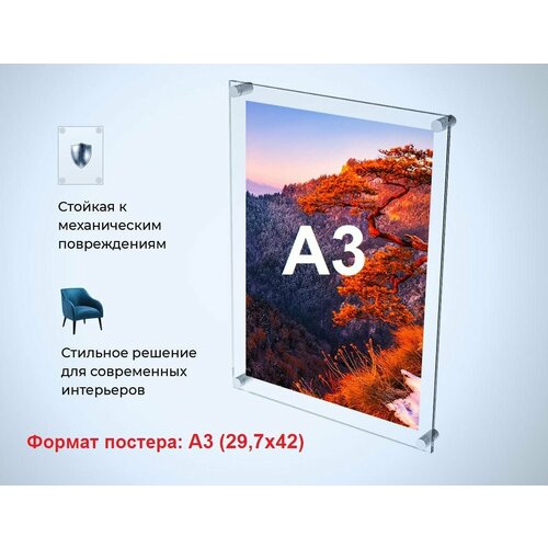 Купить Акриловая безбагетная рамка на дистанционных держателях А3+ (37*49 см) с доставкой по всей России. Акриловая безбагетная рамка на дистанционных держателях А3+ (37*49 см): сравнение цен, характеристики, фото, актуальное наличие и цены.