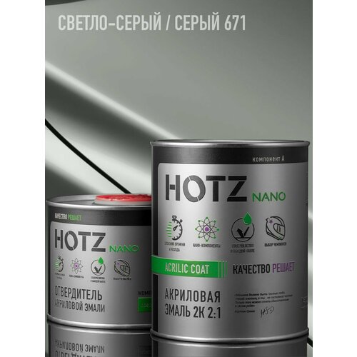 Купить Акриловая краска автомобильная 2К 2:1, Светло-серая/Серая 671, Комплект (эмаль: 1000 мл + отвердитель: 500 мл), HOTZ с доставкой по всей России.