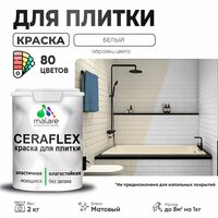 Акриловая краска для плитки Malare Ceraflex для керамической и кафельной плитки, стен в кухне и ванной, моющаяся быстросохнущая без запаха, матовая, белый, 2 кг