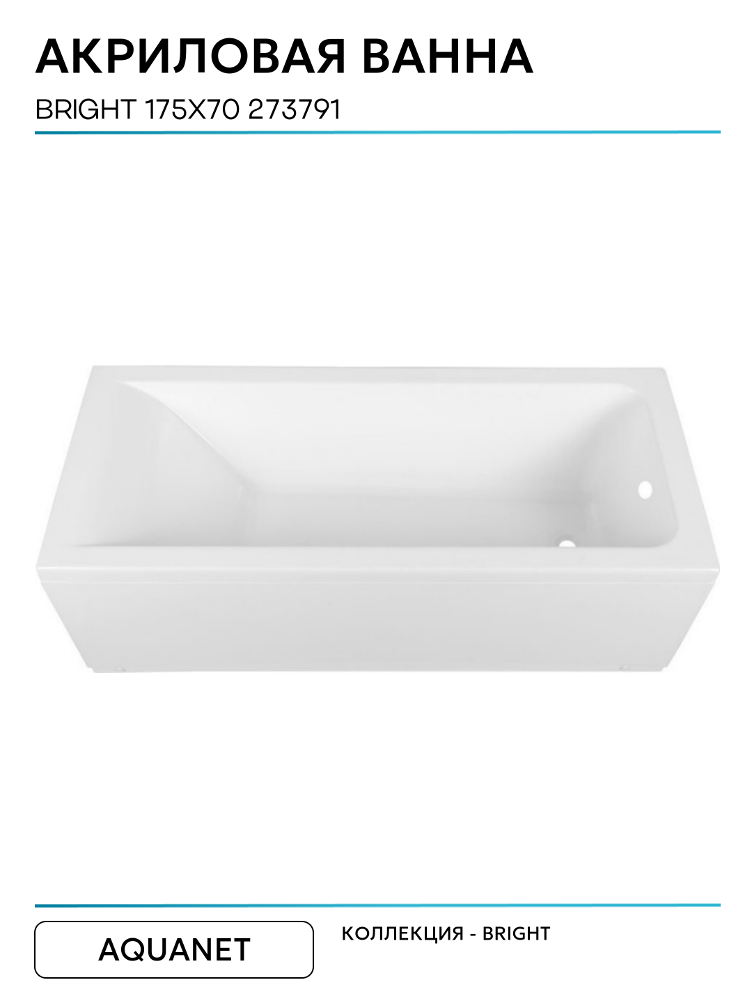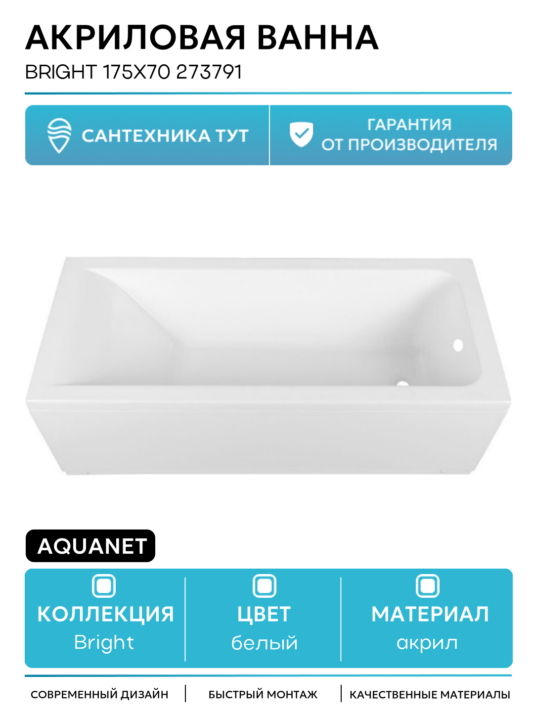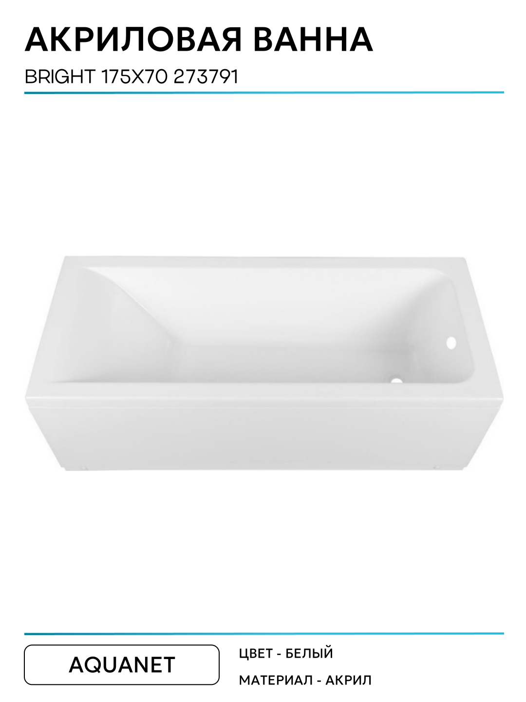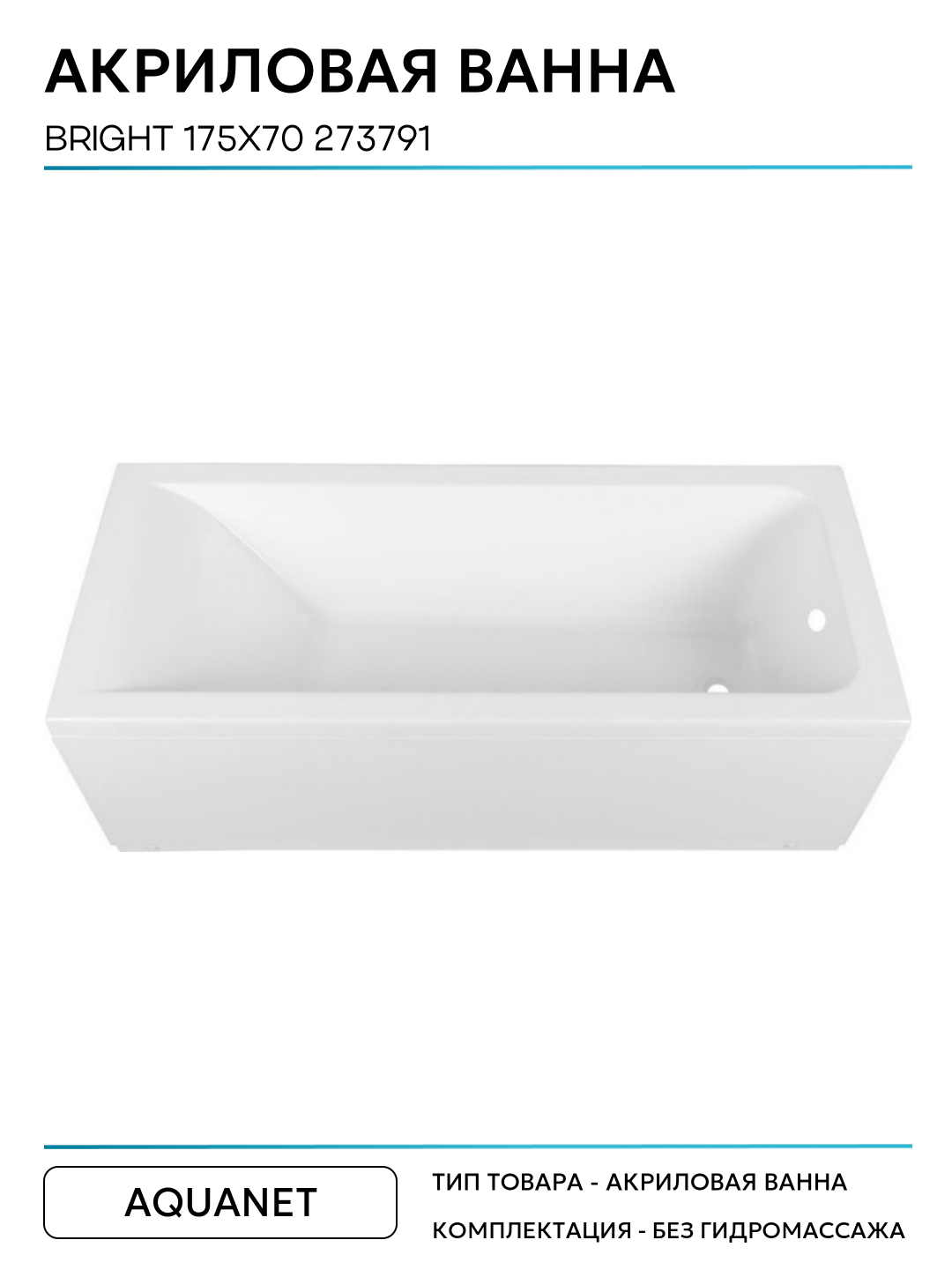 Акриловая ванна Aquanet Bright 175х70 273791 без гидромассажа белый акрил: сравнение цен, характеристики, фото, актуальное наличие и цены.