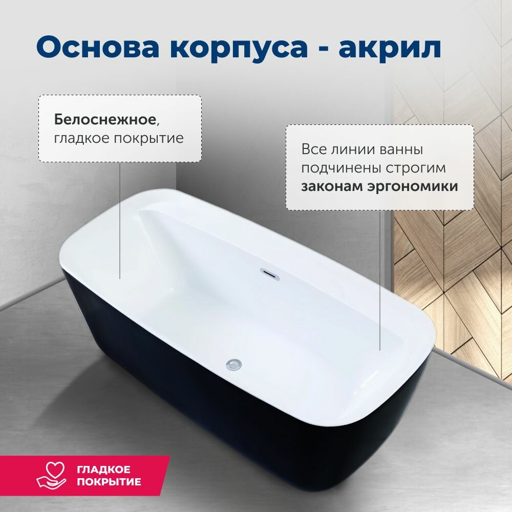 Акриловая ванна Aquanet Family Fine 170×78 95778-GW-MB Gloss Finish (панель Black matte): сравнение цен, характеристики, фото, актуальное наличие и цены.