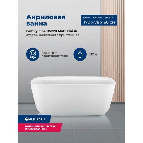 Акриловая ванна Aquanet Family Fine 170×78 95778-MW Matt Finish: сравнение цен, характеристики, фото, актуальное наличие и цены.