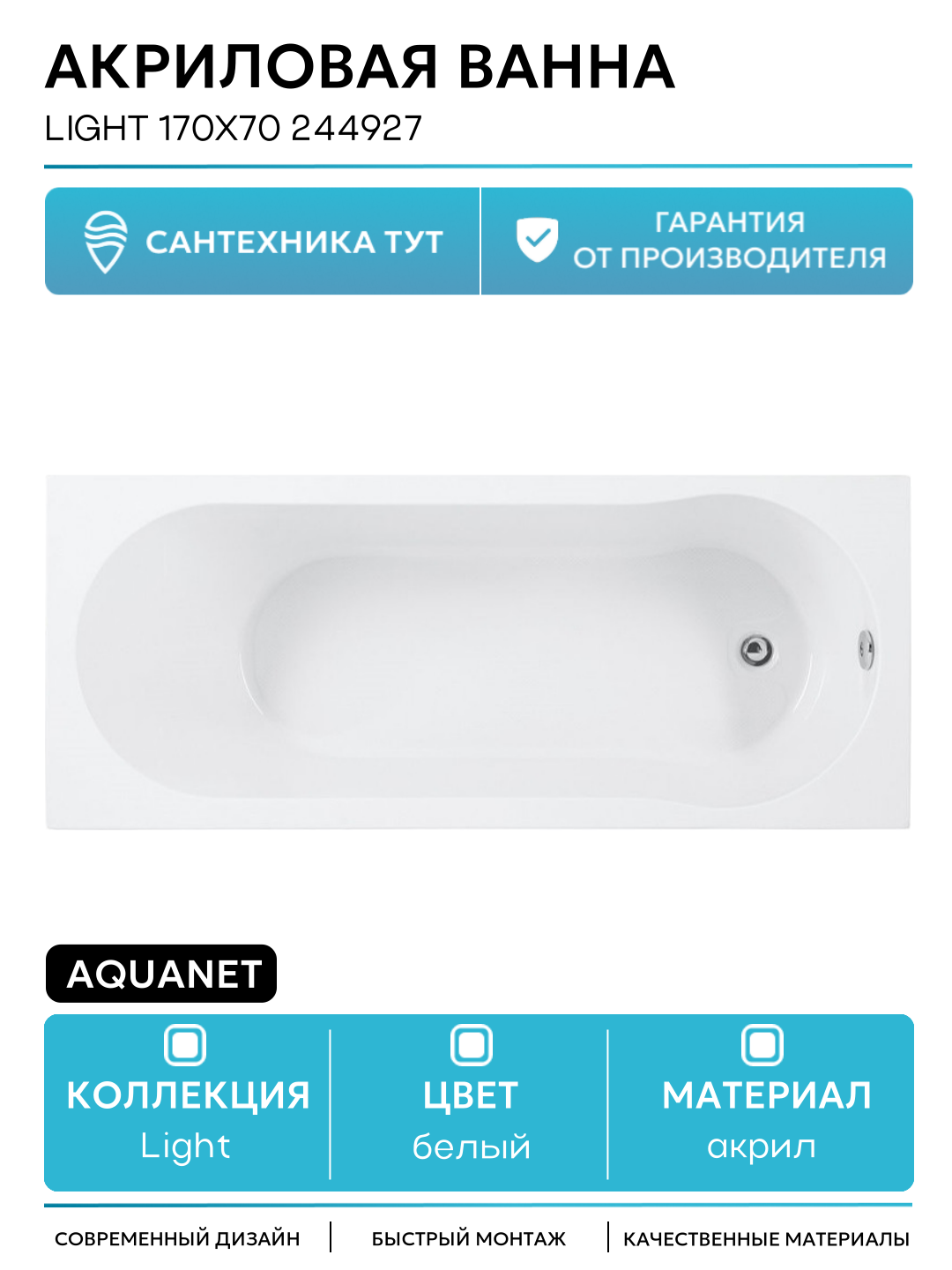 | Дополнительная информация | Вес брутто, кг | 24;Встроенное сиденье | нет;Глубина, см | 43,3;Диаметр слива, см | 5.2;Для сифона диаметром, см | 5.2;Комбинированная ванна | нет;Модель | Bright 267835 ;Оснащение | каркас;Подлокотники | нет;Размер_ванны, см | 169x70;Расположение перелива | стандартное;Стиль | современный;Страна | Россия;Толщина листа, см | 0,4;Управление | нет;Угловая конструкция | нет;Экран | приобретается отдельно; |