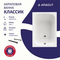 Акриловая ванна ARAGUT Классик 100х70 прямоугольная, в комплекте с ножками, белая: сравнение цен, характеристики, фото, актуальное наличие и цены.