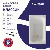 Акриловая ванна ARAGUT Классик 120х70 прямоугольная, в комплекте с ножками, белая: сравнение цен, характеристики, фото, актуальное наличие и цены.