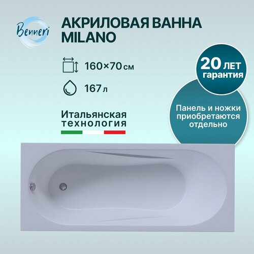 Акриловая ванна 160×70 прямоугольная Benneri Milano, пристенная 100% акрил: сравнение цен, характеристики, фото, актуальное наличие и цены.