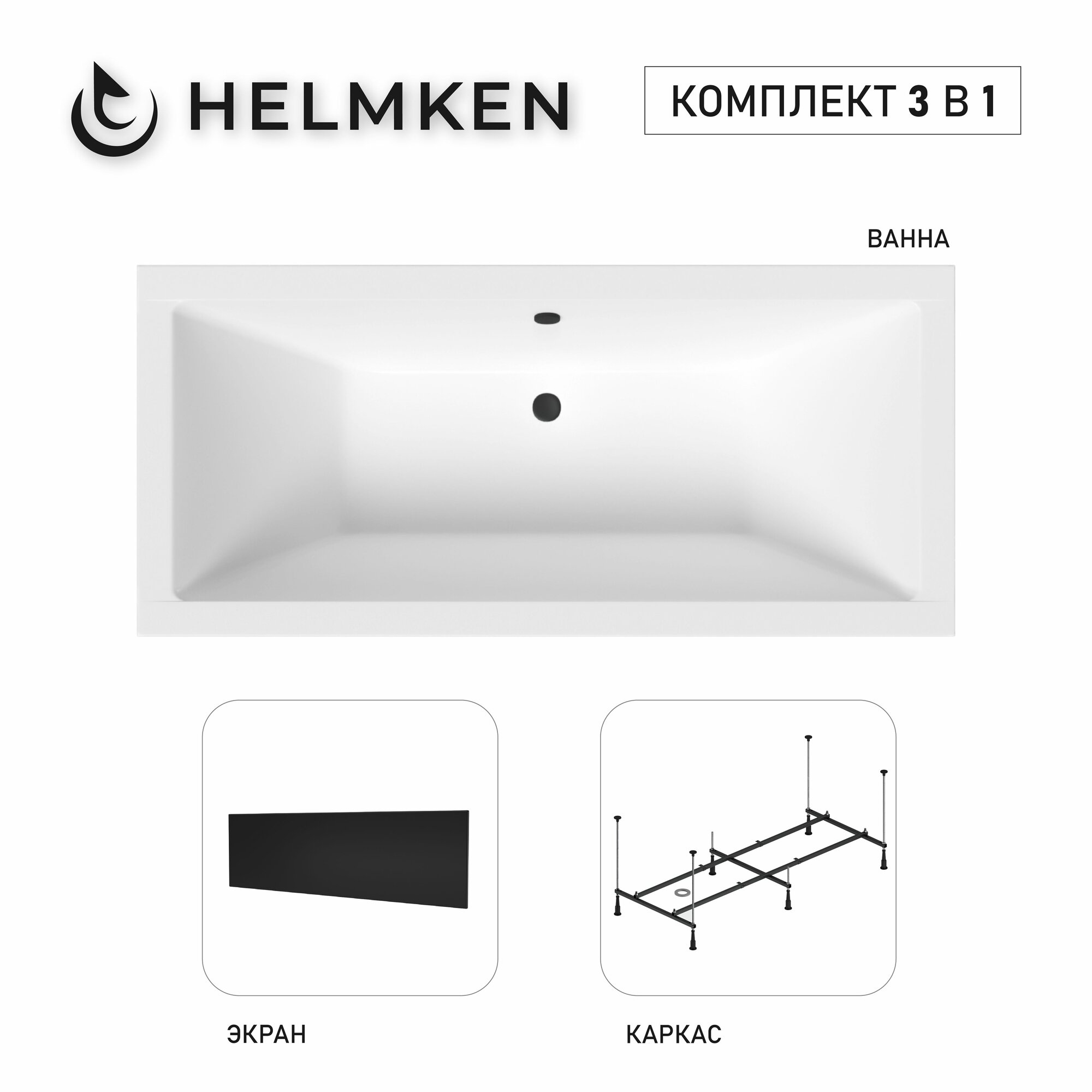 Ванна акриловая 165х75 Helmken Alvaro комплект 3 в 1: прямоугольная ванна, каркас, лицевой экран черного цвета: сравнение цен, характеристики, фото, актуальное наличие и цены.
