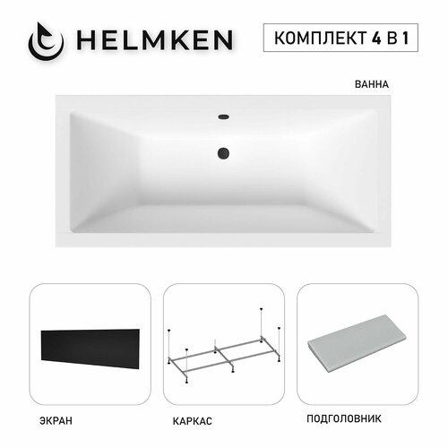 Акриловая ванна Helmken Alvaro 165×75 комплект 4 в 1: ванна, каркас, серый подголовник, черный лицевой экран: сравнение цен, характеристики, фото, актуальное наличие и цены.