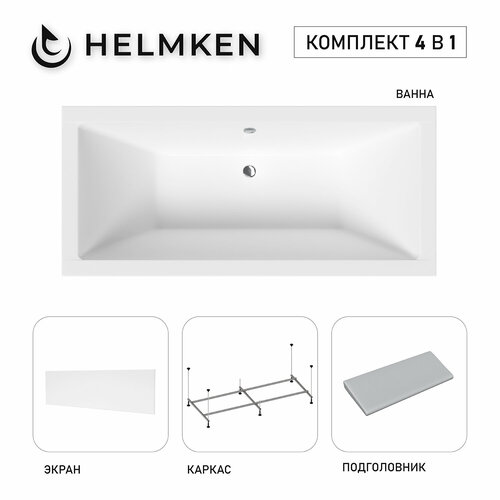 Акриловая ванна Helmken Alvaro 165×75 комплект 4 в 1: ванна, каркас, серый подголовник и белый лицевой экран: сравнение цен, характеристики, фото, актуальное наличие и цены.