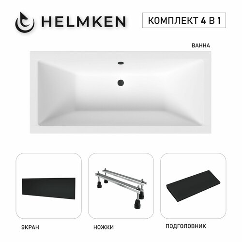 Купить Акриловая ванна Helmken Alvaro 170×75 комплект 4 в 1: ванна, ножки, черный подголовник и черный лицевой экран с доставкой по всей России.